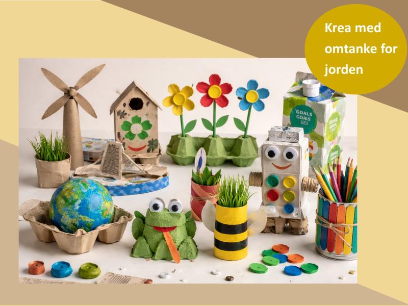 Har I rent og tørt “affald” derhjemme, som fx papruller, æggebakker, syltetøjsglas eller mælkekartoner, må I meget gerne aflevere det på Smørum Bibliotek i tiden op til uge 17 – så kan det blive til nye, kreative projekter.